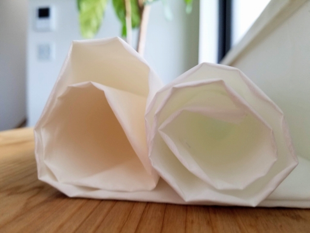 薄くて軽いのでギャザーを入れたり、用尺を使うデザインにも重くならずご使用いただけます。