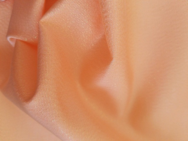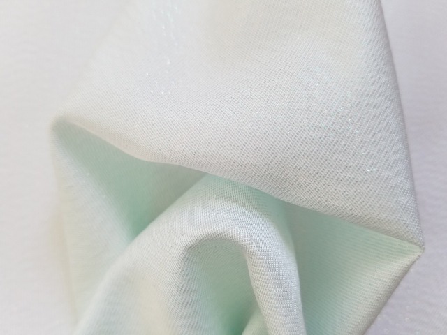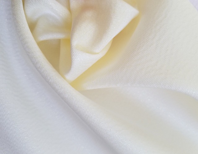 ポリエステルとキュプラの変形ツイル組織に、パールのフィルム糸を織り込みました。