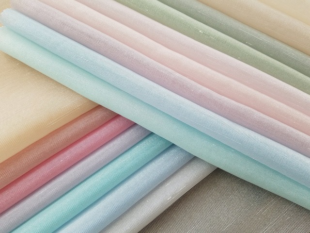 透き通った水面に映る優しい光のような淡いカラーで仕上げた上質なシャンタンです。