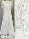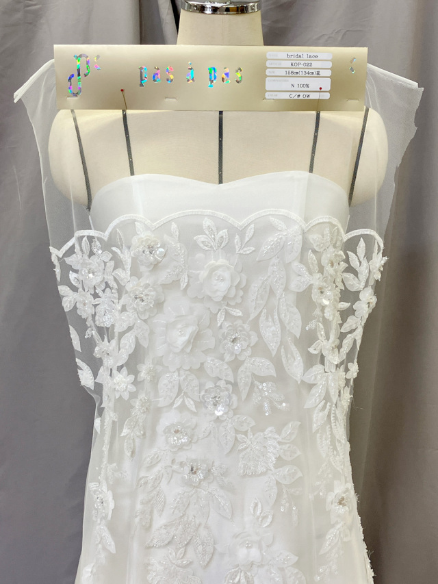 ビーズや布で重ねた立体的な柄が華やかな贅沢ブライダルレース