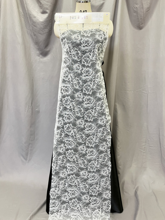繊細な花柄が広がる上品な総柄レース。装飾を一切使わず、刺繍だけで花の美しさを表現しました。軽くて柔らかな肌触りで快適な着心地と、シンプルながらも刺繍の印影で奥行きを感じる、ナチュラルで洗練された素敵なレースです。